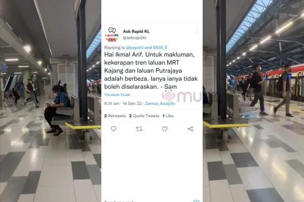 “Untuk makluman, kekerapan tren laluan MRT Kajang dan laluan Putrajaya adalah berbeza. Ianya tidak boleh diselaraskan.” Ciap prasarana