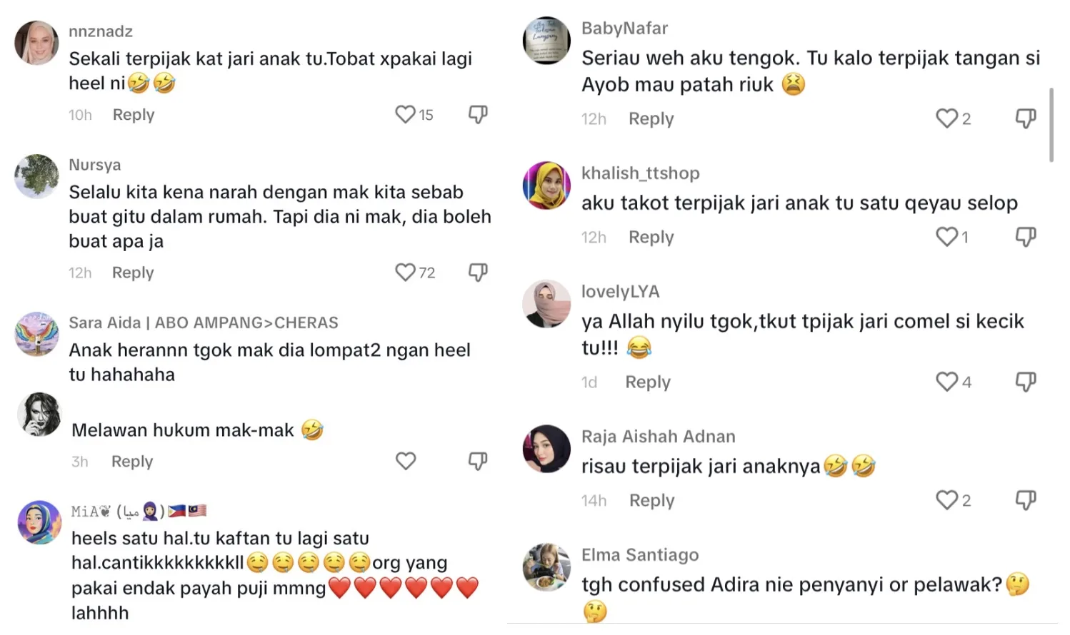 Rata-rata netizen komen bahawa mereka takut kasut tumit tinggi itu terpijak jari anaknya yang kecil itu.