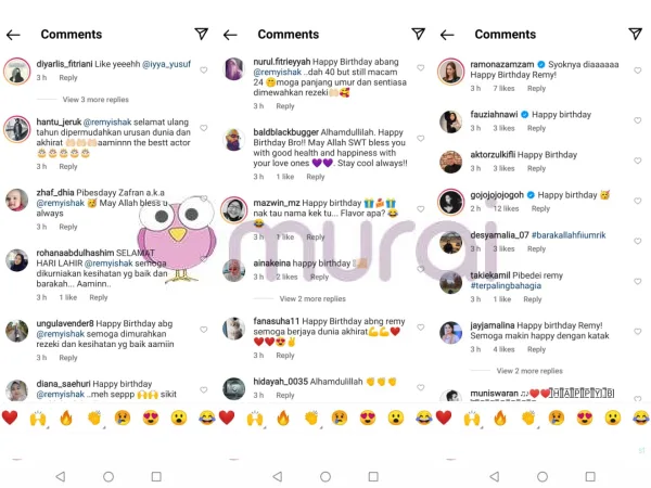 “Selamat hari lahir abang @remyishak.. Dah 40 tapi masih macam 24. Moga panjang umur dan sentiasa dimewahkan rezeki” komen mereka