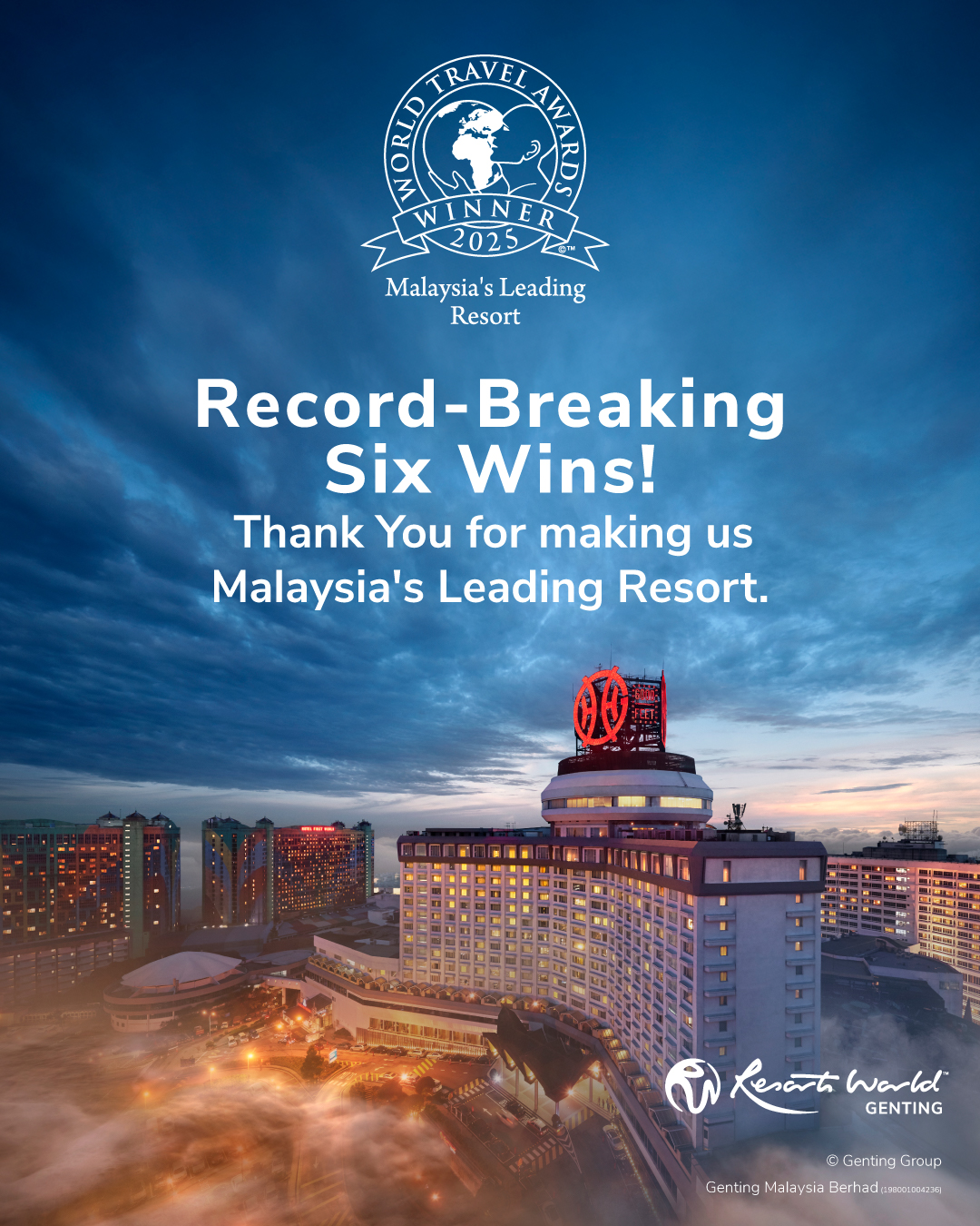 Kalau anda peminat jalan-jalan atau suka cari tempat percutian best, mesti familiar dengan Resorts World Genting (RWG), kan? Baru-baru ini, RWG sekali lagi dinobatkan sebagai ‘Resort Terunggul Malaysia’ di World Travel Awards 2025. Hebatnya, ini kemenangan keenam secara keseluruhan dan keempat berturut-turut, rekod baru tau! Jadi tak hairanlah RWG sekarang satu-satunya resort di Malaysia yang pernah menang enam kali dalam kategori ni.