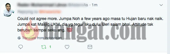 Malah, di dalam tweet nya itu, ketika waktu azan solat kedengaran Noh meminta netizen tersebut untuk jagakan telefon bimbitnya sementara beliau pergi ke surau berhampiran untuk tunaikan solat.