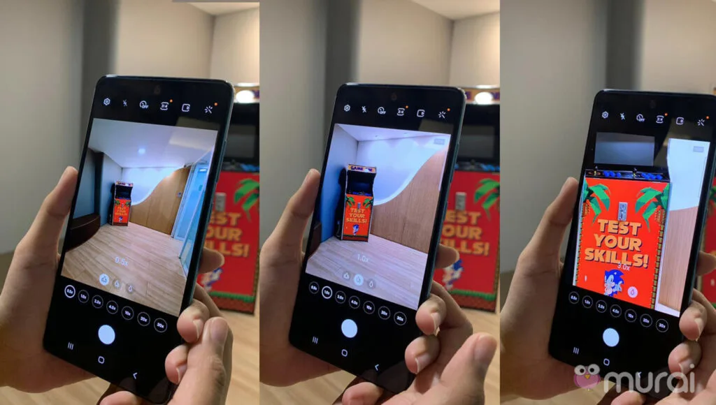 Kamera ini juga dilengkapi dengan 3x optical zoom dan 30X space zoom pada lensa telefoto dengan penstabilan imej optik (OIS), yang membantu menstabilkan tangkapan untuk mengekalkan pergerakan yang lancar dan hasil gambar yang tajam walaupun cahaya redup.
