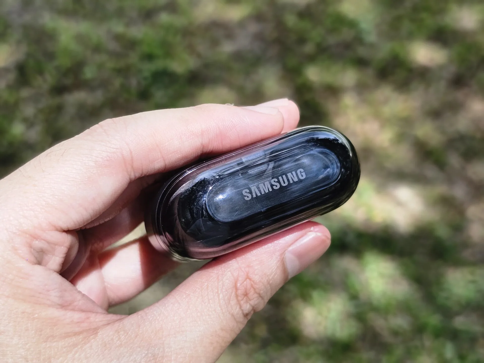 Kalau dulu Galaxy Buds nampak macam “kacang,” kali ini dia datang dengan design baru ada batang (stem), sama macam versi Pro. Nampak kemas, tak mudah calar sebab kemasan matte, dan senang nak tarik keluar dari casing tanpa terlepas jatuh. Casing dia transparan, so tak perlu buka baru nak check ada dua-dua ke tak. Bijak!