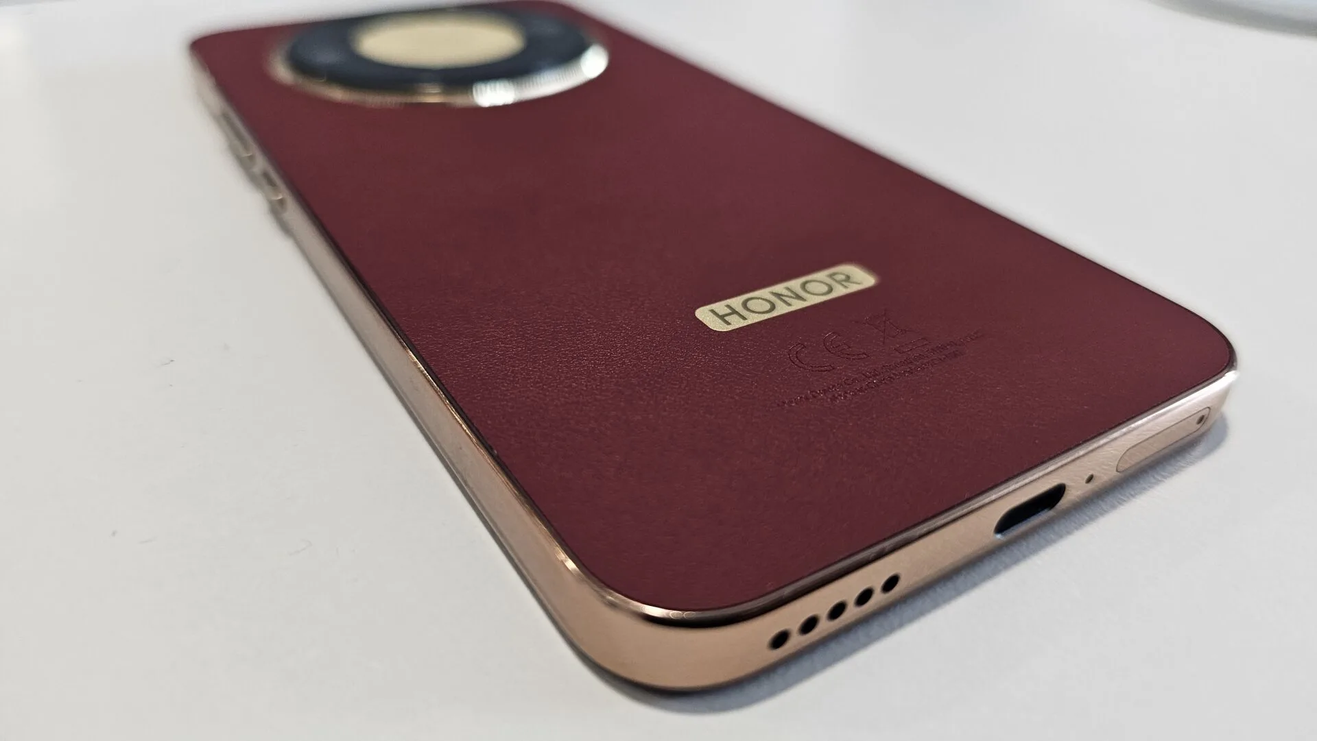 Belakang HONOR X9d 5G ini, MURAI dapat warna Reddish Brown. Serius, sekali pandang terus rasa macam kulit sofa import. Warna dia kaya, nampak mahal, siap ada aksen emas yang menambah vibe chic dan classy. Bila keluar letak atas meja mamak, terus nampak macam MURAI ini orang bisnes besar, padahal baru habis bayar bil TNB.