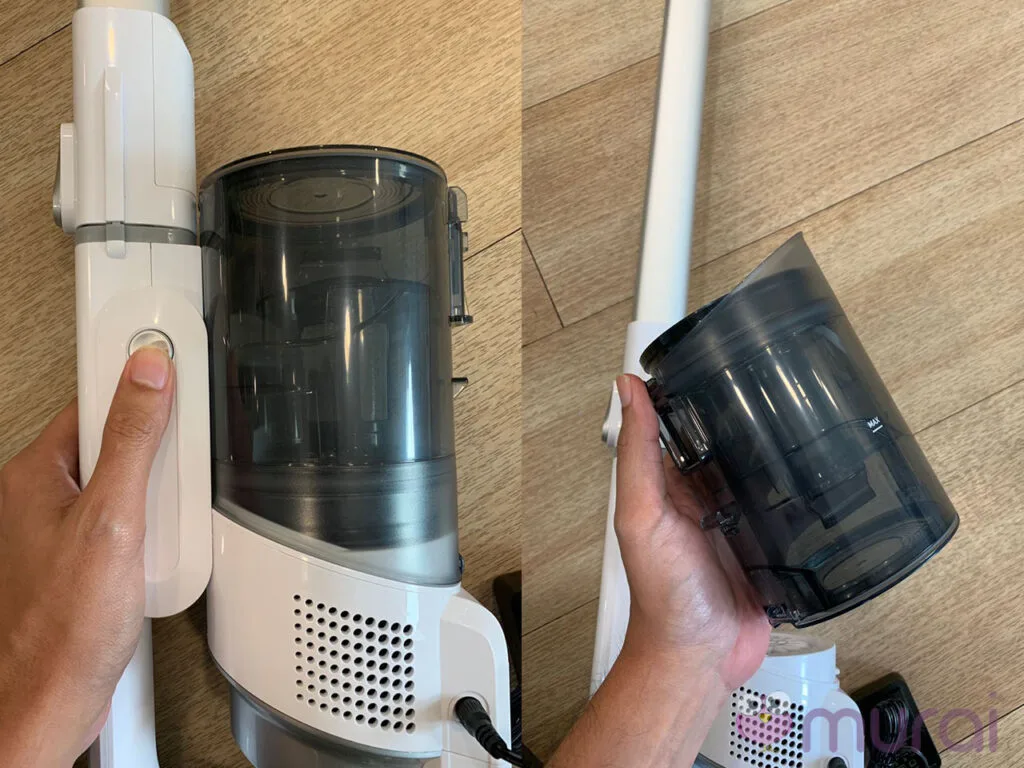 Pandangan kali pertama, tak jauh beza dengan jenama lain. Sememangnya realme TechLife Handheld Vacuum mempunyai reka bentuk yang selesa untuk dikendalikan. Di bawah pemegang, terdapat satu bekas sampah sebesar 0.5 liter yang mudah untuk dibuka dan dibersihkan..