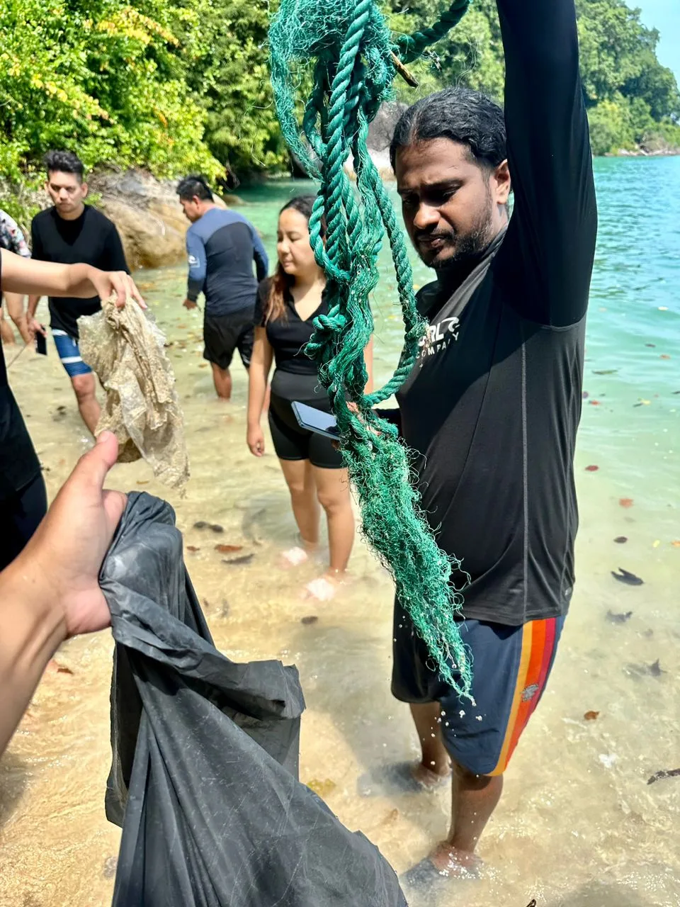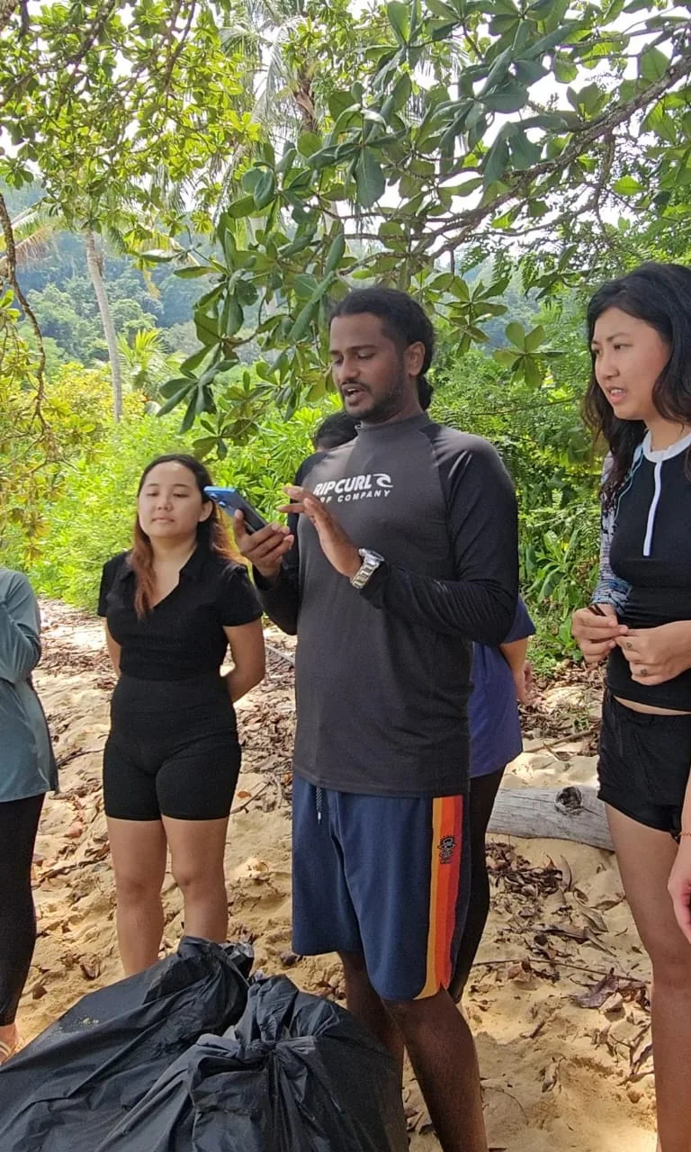 Kami dibawa ke Monkey Bay dan dibahagikan kepada kumpulan kecil. Setiap kumpulan akan diberikan kawasan tertentu untuk dibersihkan. Alat-alat seperti sarung tangan, beg sampah, dan tong kitar semula akan disediakan.