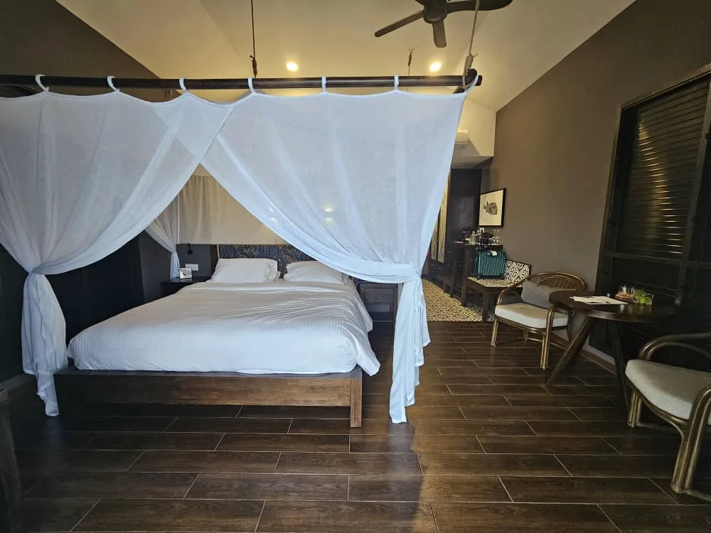 Saya menginap di bilik Deluxe Bungalow yang berharga sekitar RM900 termasuk sarapan pagi. Terdapat juga bilik lain seperti Beachfront Bungalow, Beachfront Family Bungalow, Beach House Suite, Beach House Loft, dan 2-3 Bedroom Beach House.