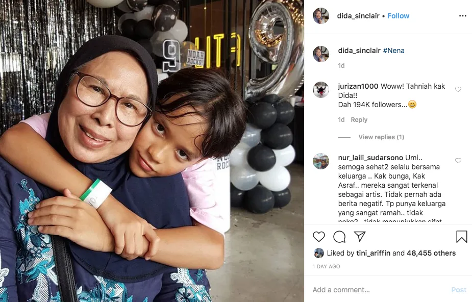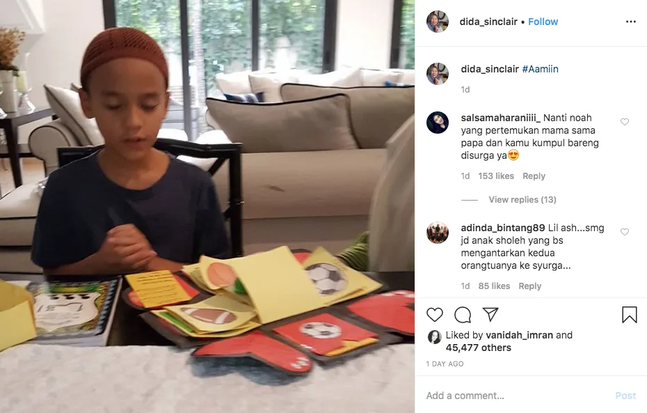 Khadijah yang dipanggil Umi oleh anak lelaki dan menantunya kemudian memuat gambar Noah memeluk datuknya, Mohamed Anthony John Sinclair. Dalam gambar ini, Khadijah menulis kapsyen ringkas, “#Tok.”