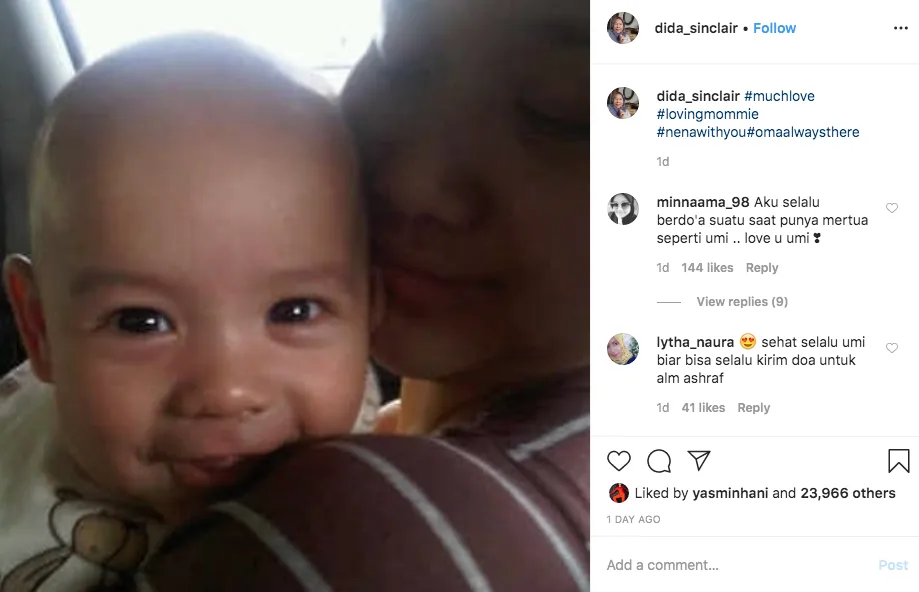 Khadijah A Rahmah, ibu kepada arwah Asyraf Sinclair telah berkongsi beberapa gambar cucunya di akaun Instagramnya sejak hari Ahad, 8 Mac, 2020. Dia memuat naik gambar Noah, iaitu anak tunggal Asyraf dan Bunga Citra Lestari (BCL).