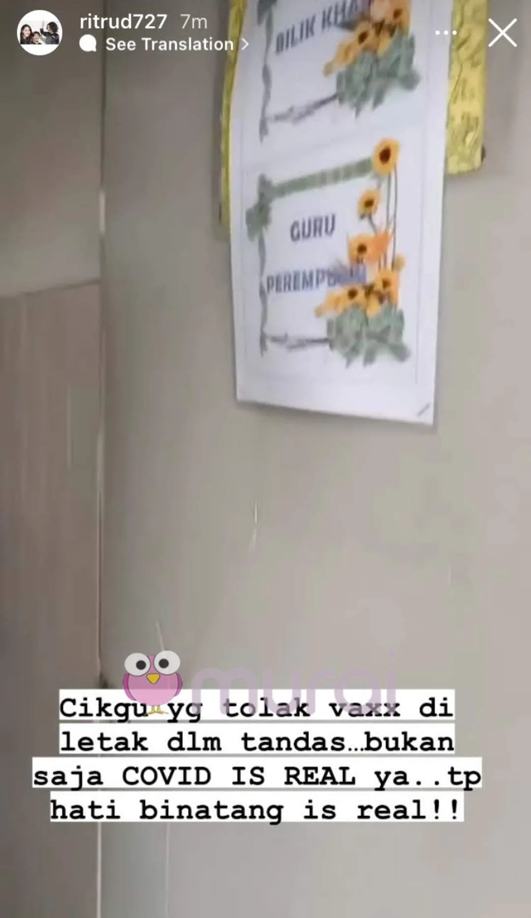 “Cikgu yang tolak Vaxx diletak dalam tandas.bukan sahaja COVID IS REAL ya..Tapi hati binatang is real!!”-tegas Rita