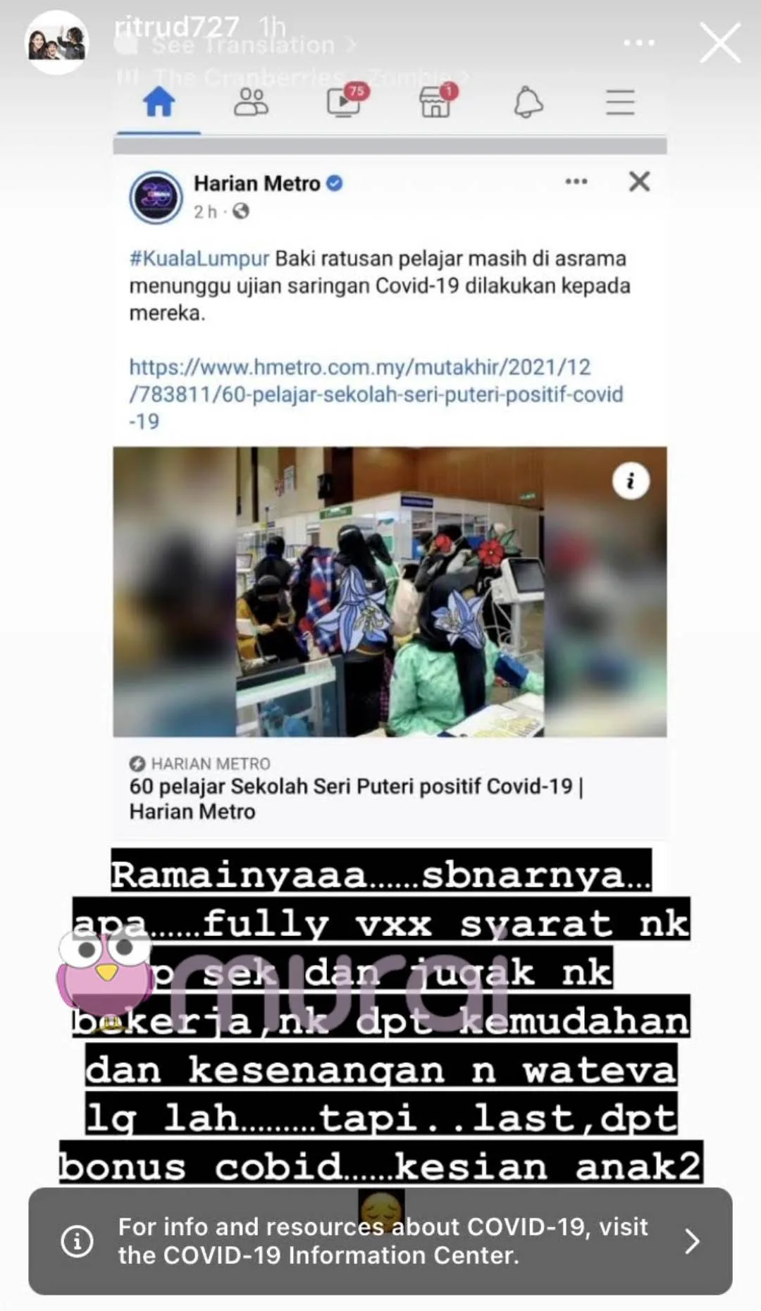 Tapi..Last-last dapat bonus Covid..Kesian anak-anak”- luah Rita