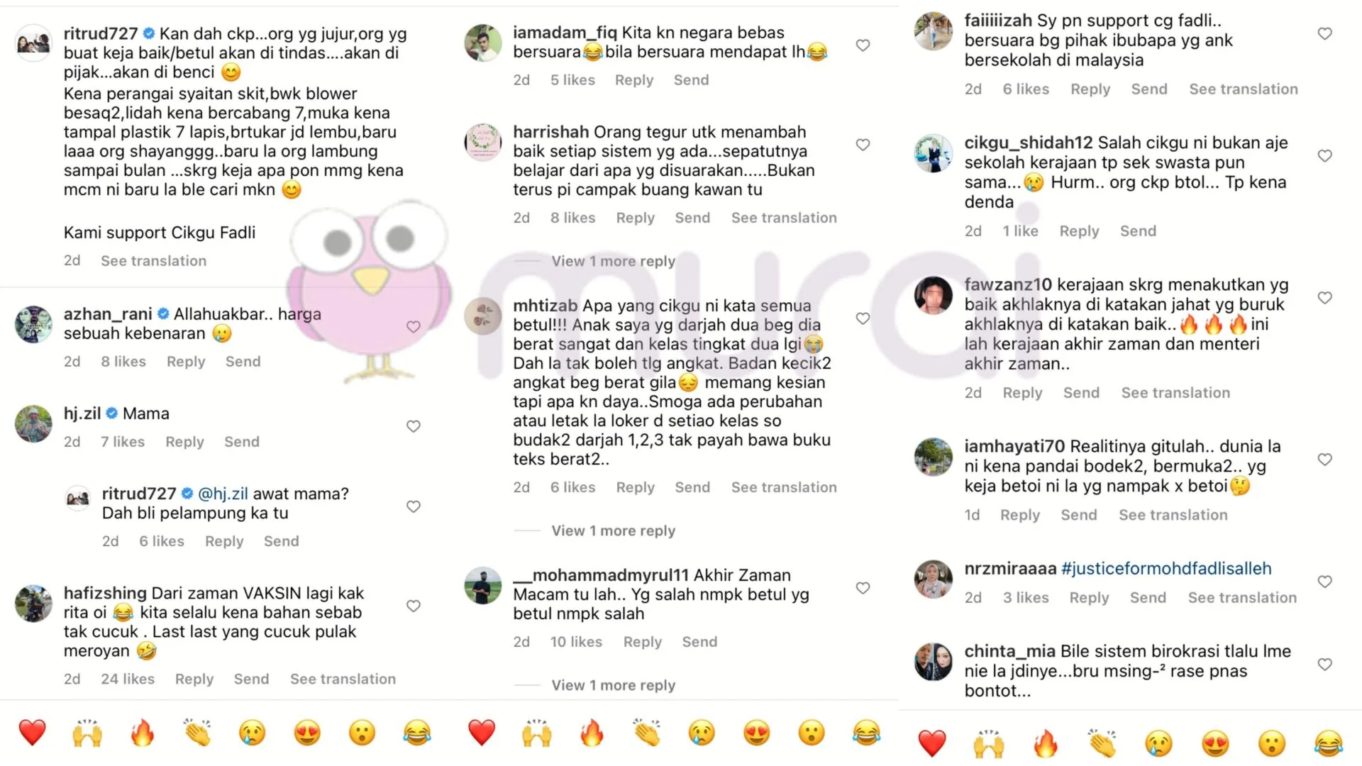 Tinjauan Murai di ruangan komen mendapati rata-rata netizen turut menyuarakan reaksi mereka berhubung isu guru tersebut, serta ada yang menitipkan doa agar Cikgu Fadli bakal mendapat keadilan yang sewajarnya.