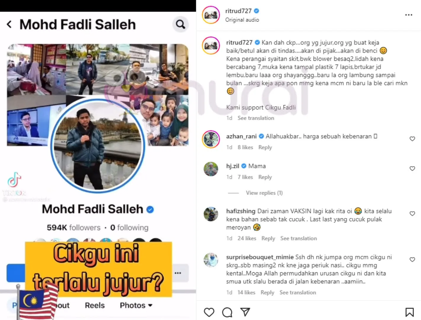 Isu seorang guru iaitu Cikgu Mohd Fadli yang menjadi bualan selepas menyuarakan pendapat berhubung silibus pembelajaran yang menurutnya terlalu tinggi dan tidak sesuai mendapat reaksi dari pelbagai pihak termasuklah pelakon, Rita Rudaini yang tampil mempertahankan Cikgu Fadli yang berkemungkinan berdepan dengan tindakan oleh pihak atasan.