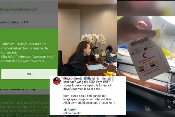 Menjengah ke Instagram Rita, beliau berkongsi mendapat tawaran panggilan mengerjakan rukun Islam kelima itu bersama suaminya di saat akhir dan perlu menguruskan segala urusan dalam masa tiga hari sahaja.