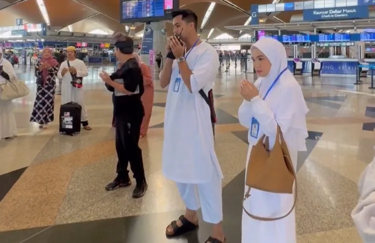 Ruhainies menerusi Insta Stories, dilihat berkongsi satu video yang memaparkan dirinya bersama pelakon, Aliff Aziz yang sama-sama mengenakan jubah putih sedang mengamimkan doa ketika berada di lapangan terbang.