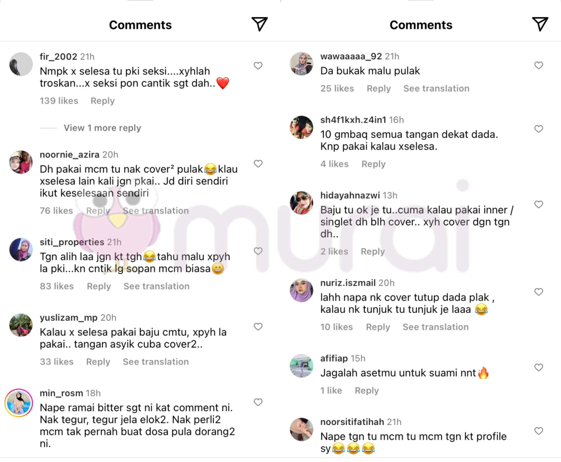Biarpun dibanjiri dengan teguran netizen, pelakon ini dilihat tidak memberikan sebarang respon terhadap komen netizen yang dilemparkan terhadap dirinya itu. Apa komen anda?