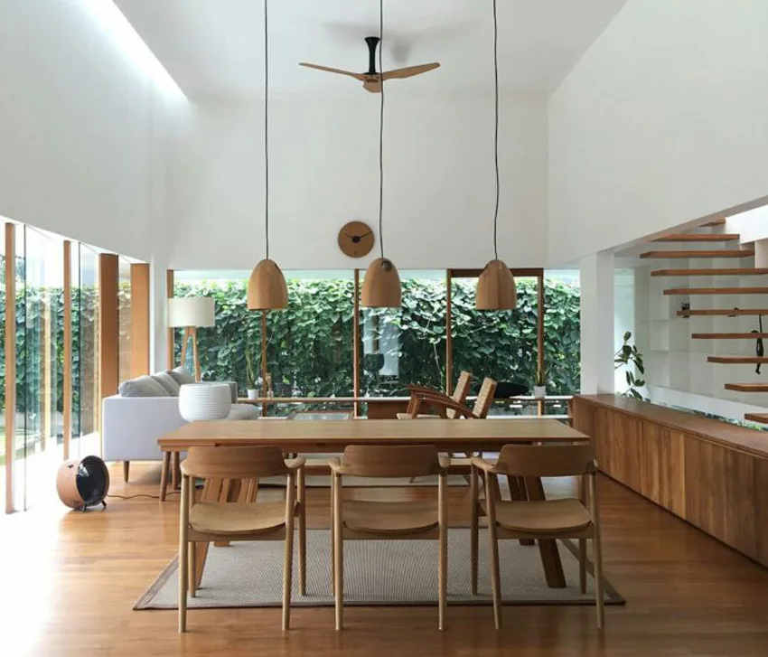 Hiasan dalaman rumah ini didominasikan warna putih dengan pepohonan rendang sekaligus membuatkan rumah tersebut menjadi sangat menenangkan.