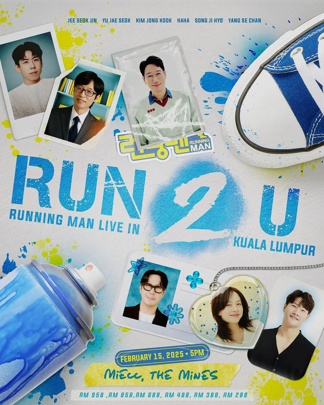 Akhirnya setelah genap tujuh tahun menanti, barisan artis Running Man bakal menemui peminat mereka di Malaysia dalam Konsert Running Man Run 2 U Live In Kuala Lumpur yang akan diadakan pada 15 Februari 2025 di Mines International Exhibition and Convention Centre (MIECC), Kuala Lumpur.