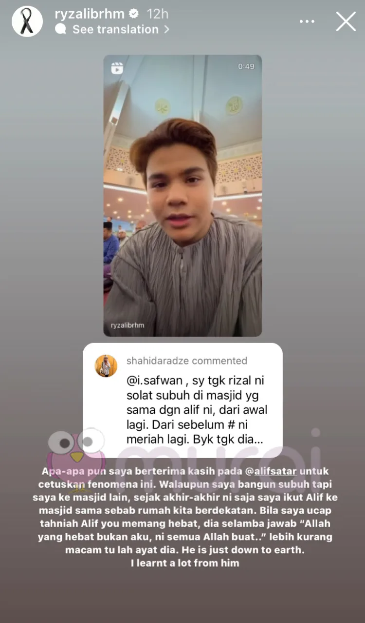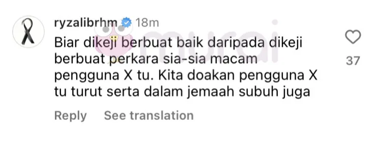 “Biar dikeji berbuat baik daripada dikeji berbuat perkara yang sia-sia macam pengguna X tu. Kita doakan pengguna X tu turut serta dalam jemaah subuh juga.”-komen Ryzal di Instagram