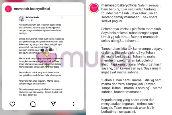 Selain pengasas kek, pasukan Mamasab juga memohon maaf dan beri penjelasan di akaun Instagram rasmi Mamasab serta mengatakan mereka akan lebih berhati-hati di masa akan datang.