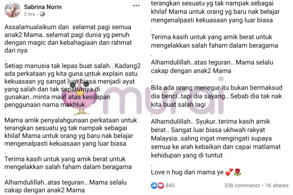 “Salam semua.. Baru-baru ni tular satu video tentang pengasas Mamasab. Saya selaku salah seorang keluarga Mamasab.. Nak kongsi sedikit pagi ni.