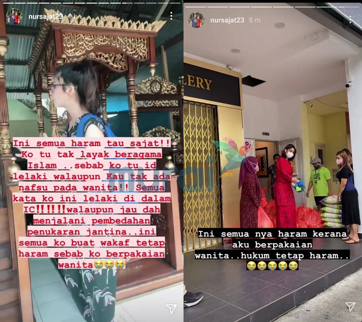 “Adakah aku seorang kafir? Aku selalu bersedekah, membayar zakat. Tetapi kerana pakaianku adalah wanita, aku dihukum oleh agamaku. Orang macam aku ini tak layak memeluk Islam, sebab orang macam aku ini digari dan dihukum teruk dalam agamaku.”