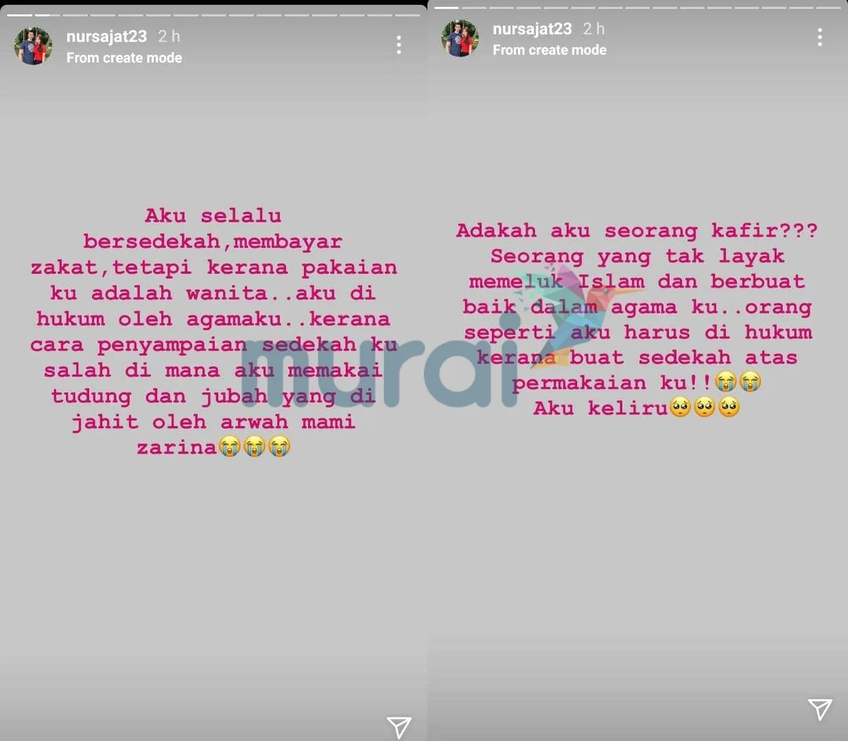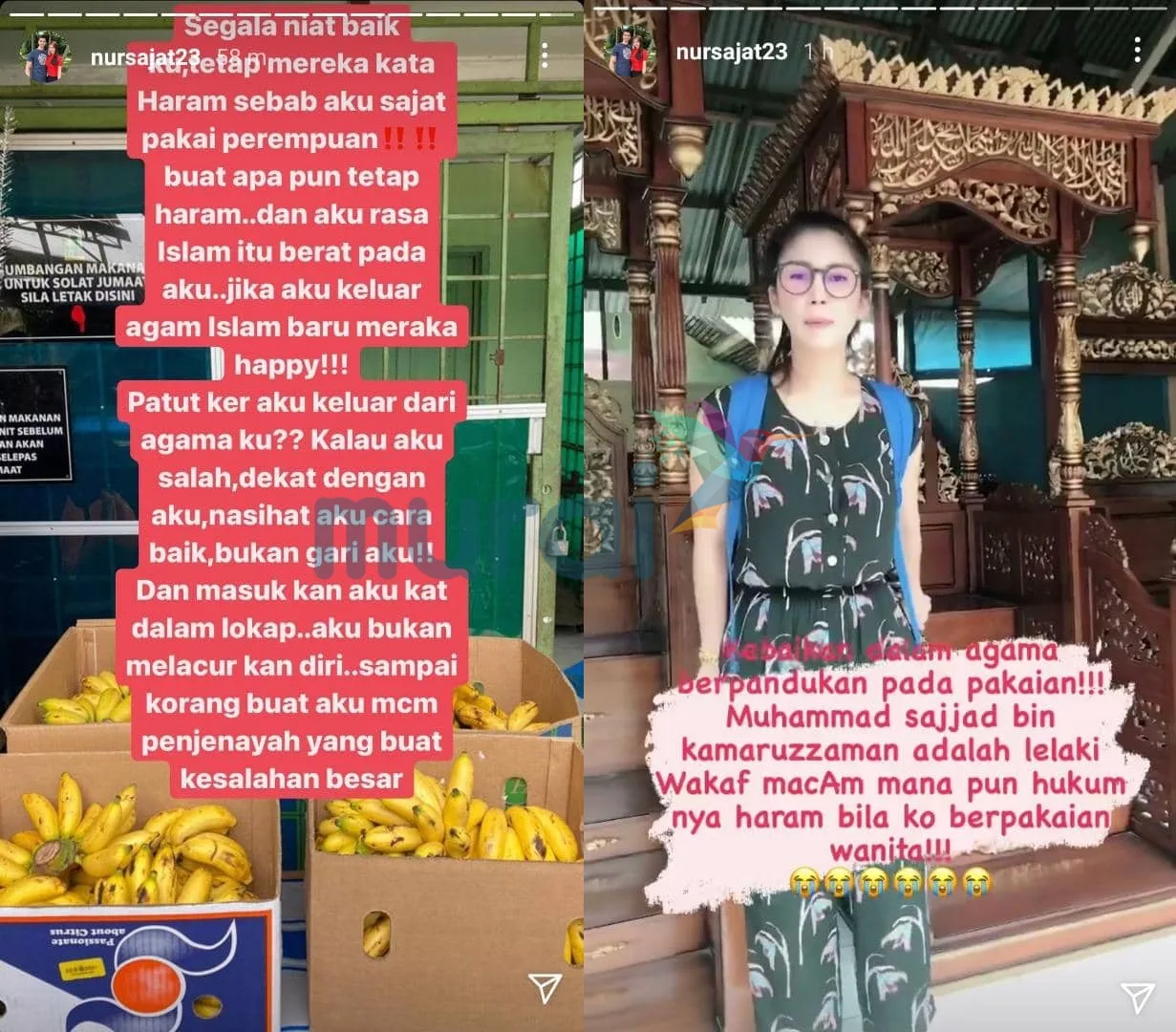 Dalam perkongsian tersebut, Sajat mendakwa dia seperti sudah berputus asa dengan agaam Islam kerana apa sahaja kebaikan yang dilakukan pasti menerima kecaman orang ramai.