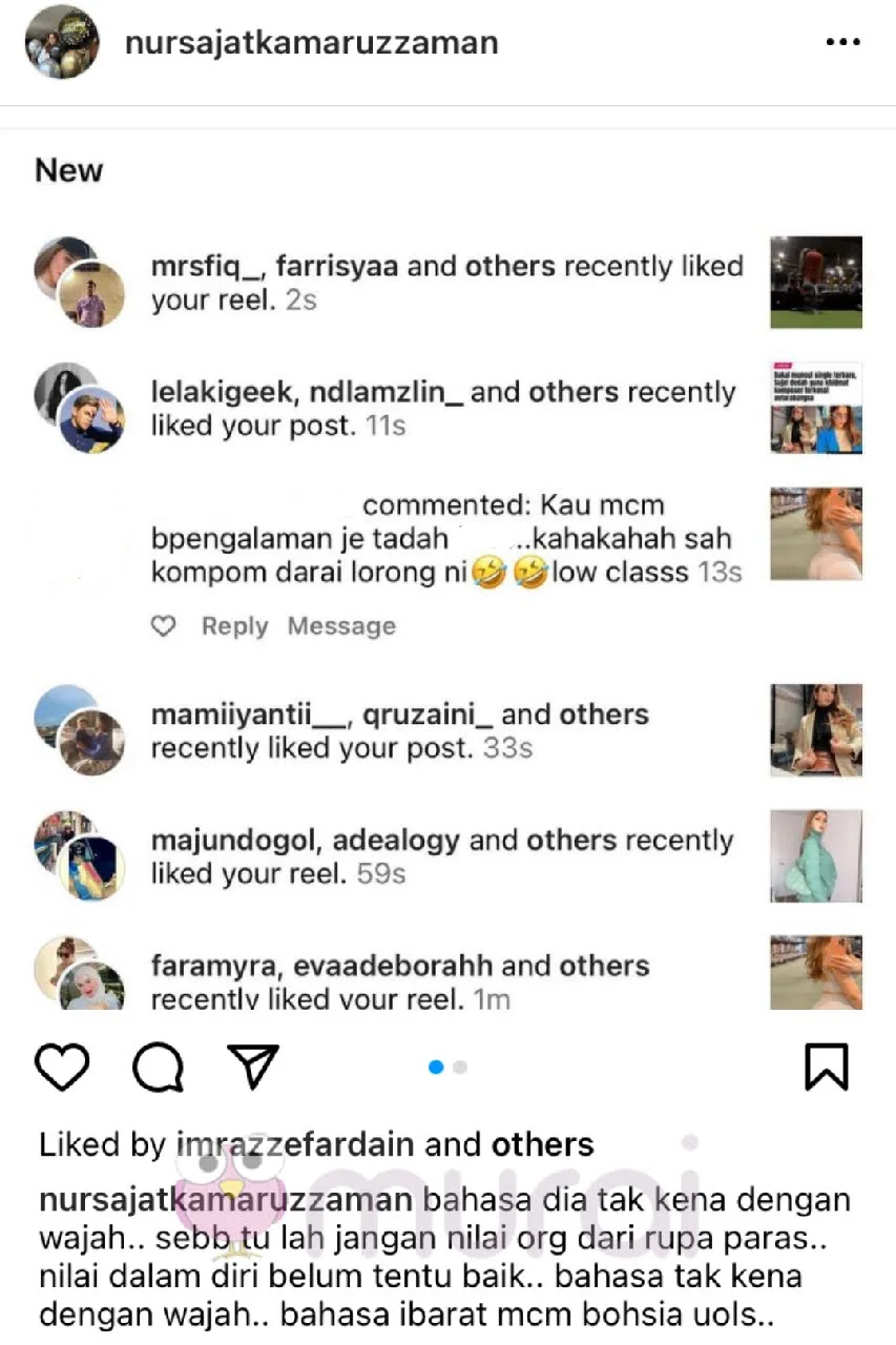 Menerusi hantaran di Instagram, Nur Sajat dilihat memuatnaik komen netizen yang dikenali sebagai @rohana_ana98 yang meninggalkan komen yang melampau malah menggelar Sajat sebagai “darai lorong”.