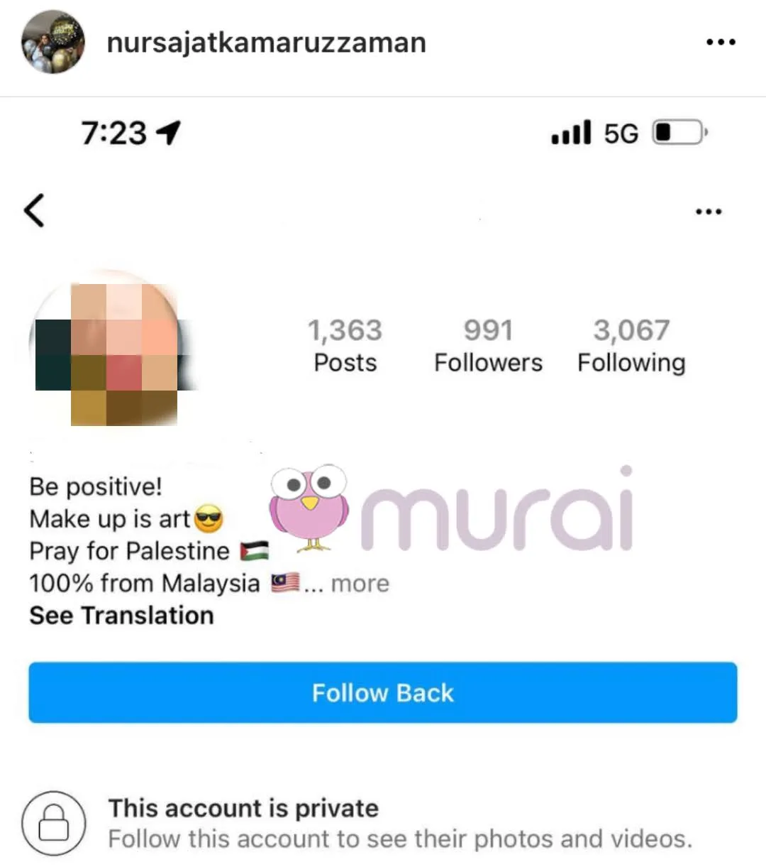 Tidak berdiam diri, Nur Sajat mengambil tindakan dengan memuatnaik akaun pemilik netizen wanita itu dengan menyatakan bahawa bahasa yang digunakan tidak bersesuaian dengan penampilannya yang bertudung.