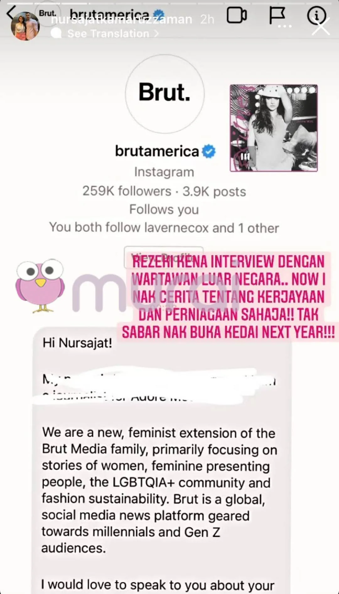 “Rezeki kena interview dengan wartawan luar negara…Now I nak cerita tentang kejayaan dan perniagaan sahaja