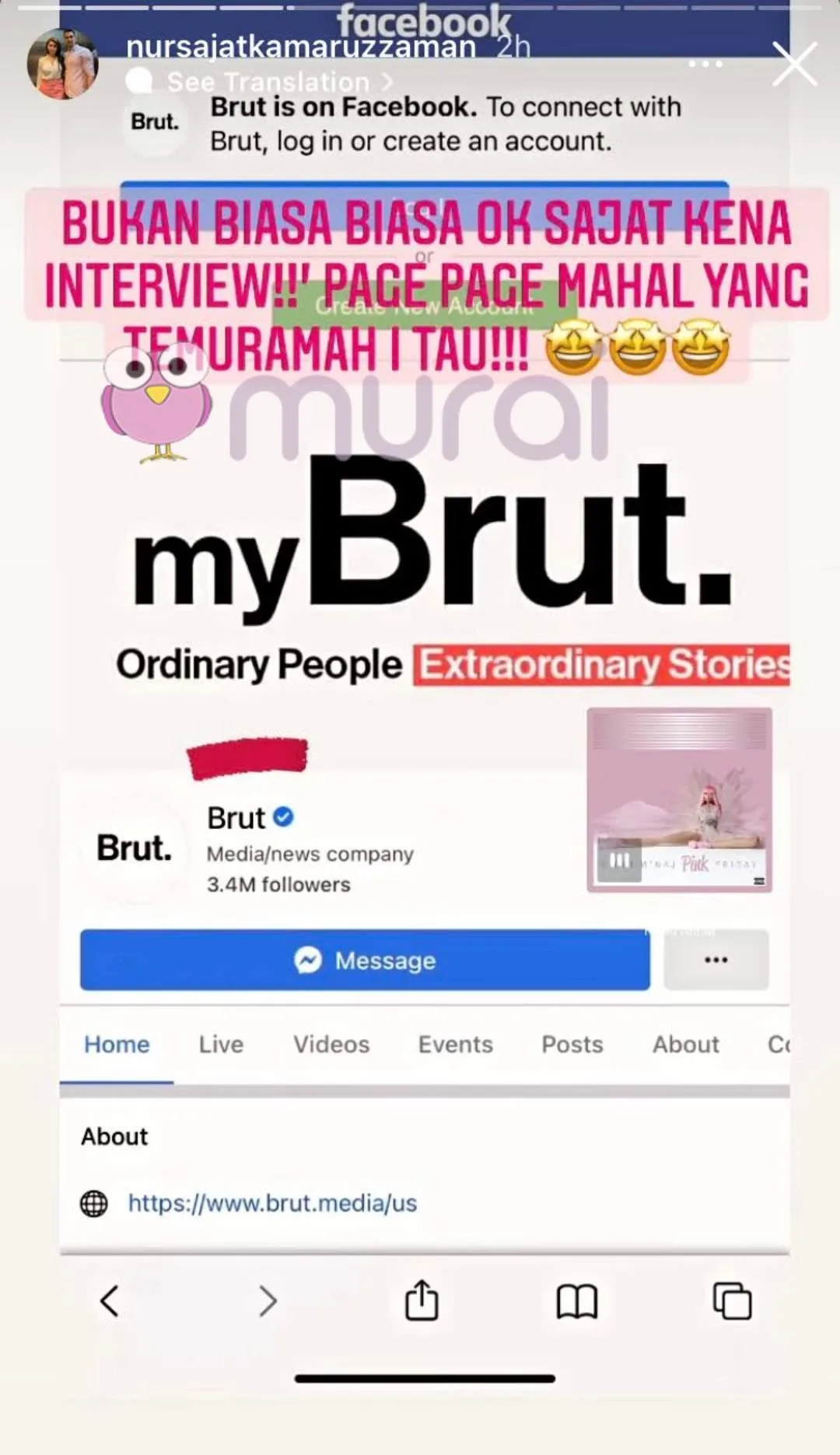 Usahawan sensasi, Nur Sajat meluahkan rasa teruja apabila mendapat tawaran untuk ditemubual bersama wartawan dari luar negara yang dikenali sebagai Brut America.