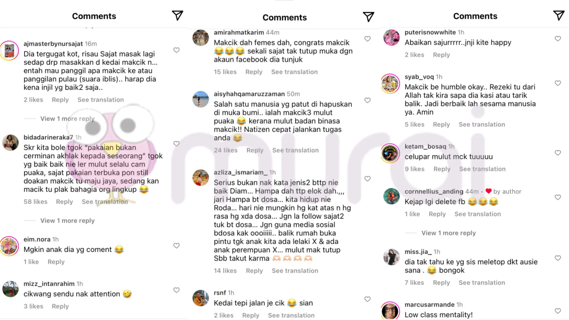 Tinjauan Murai di ruangan komen, rata-rata netizen lain meluahkan rasa kesal, serta ada yang menyifatkan wanita berkenaan sengaja mahu meraih perhatian dengan memberikan komen sedemikian.