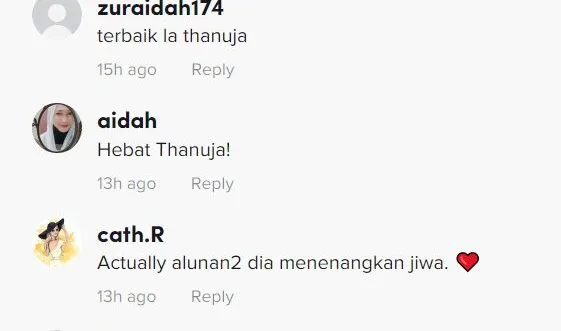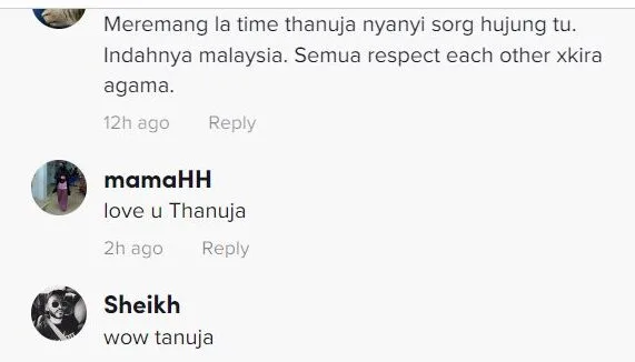 Menjengah keruangan komen, rata-rata peminat Thanuja kagum dengan nyanyiannya dan juga sikapnya yang saling menghormati antara satu sama lain walaupun berlainan agama.