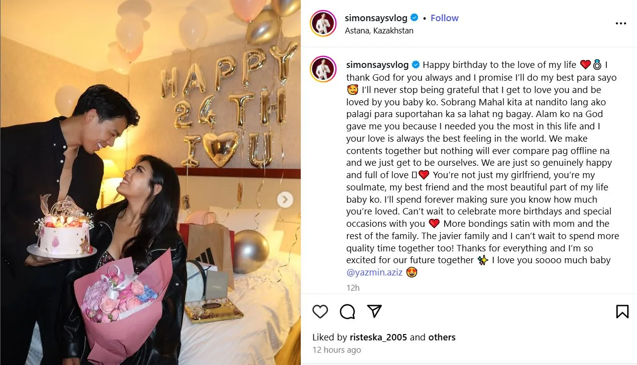 Menerusi sebuah perkongsian video di TikTok, Simon yang juga seorang pencipta kandungan (content creator) dari Filipina, dilihat membuat persiapan rapi dengan membeli hadiah dan menghias bilik hotel khas untuk Yazmin.