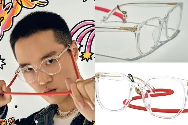 Melambangkan Tahun Arnab, kaca mata optik ini menampilkan bingkai optik lutsinar dengan bahagian hujung kuilnya ada grafik arnab yang eksklusif. Dan menariknya, kaca mata optik ini ada perincian emas halus pada kuil dan tali kaca mata merah yang sepadan.