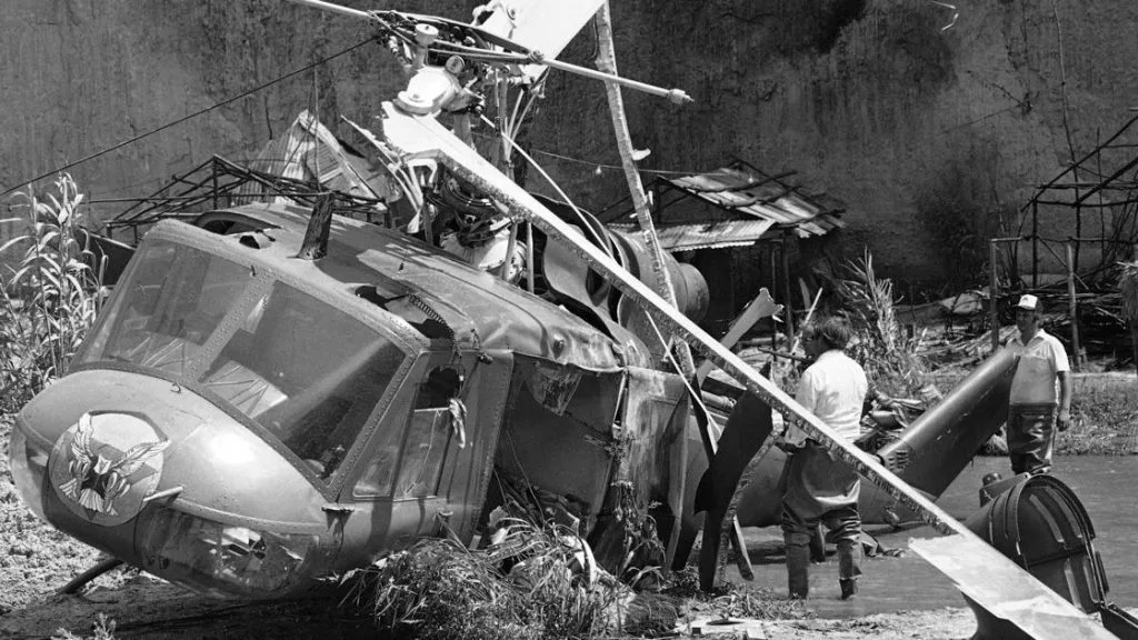 Semasa kejadian di mana Morrow diserang oleh tentera Amerika di Vietnam, piroteknik itu meletup, memusnahkan ekor helikopter, yang menyebabkan helikopter tersebut terhempas, memusnahkan Morrow dan membunuh kedua-dua pelakon kanak-kanak itu.