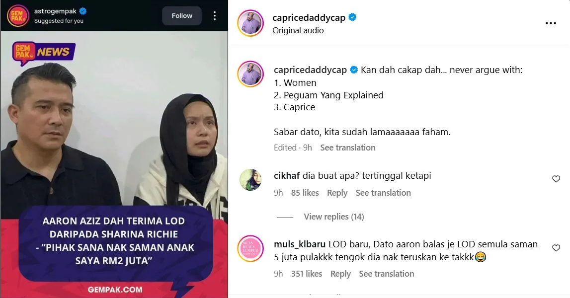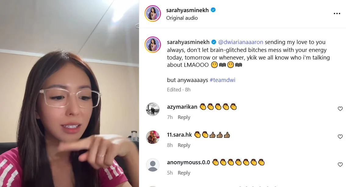 Malah pempengaruh Sarah Yasmine juga turut menasihati anak Aaron Aziz supaya tidak membazirkan tenaga kepada individu terbabit.