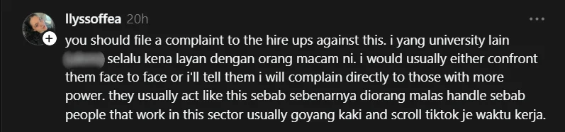 Meninjau ruangan komen, rata-rata netizen meluahkan rasa tidak puas hati terhadap layanan yang dianggap tidak profesional dalam urusan rasmi.