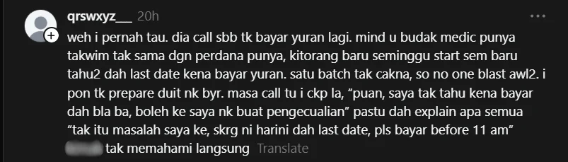 Individu terbabit menegaskan bahawa dia tidak keberatan untuk membuat bayaran semula jika perlu, namun hanya mahukan penjelasan yang jelas agar dapat mengakses keputusan peperiksaan.