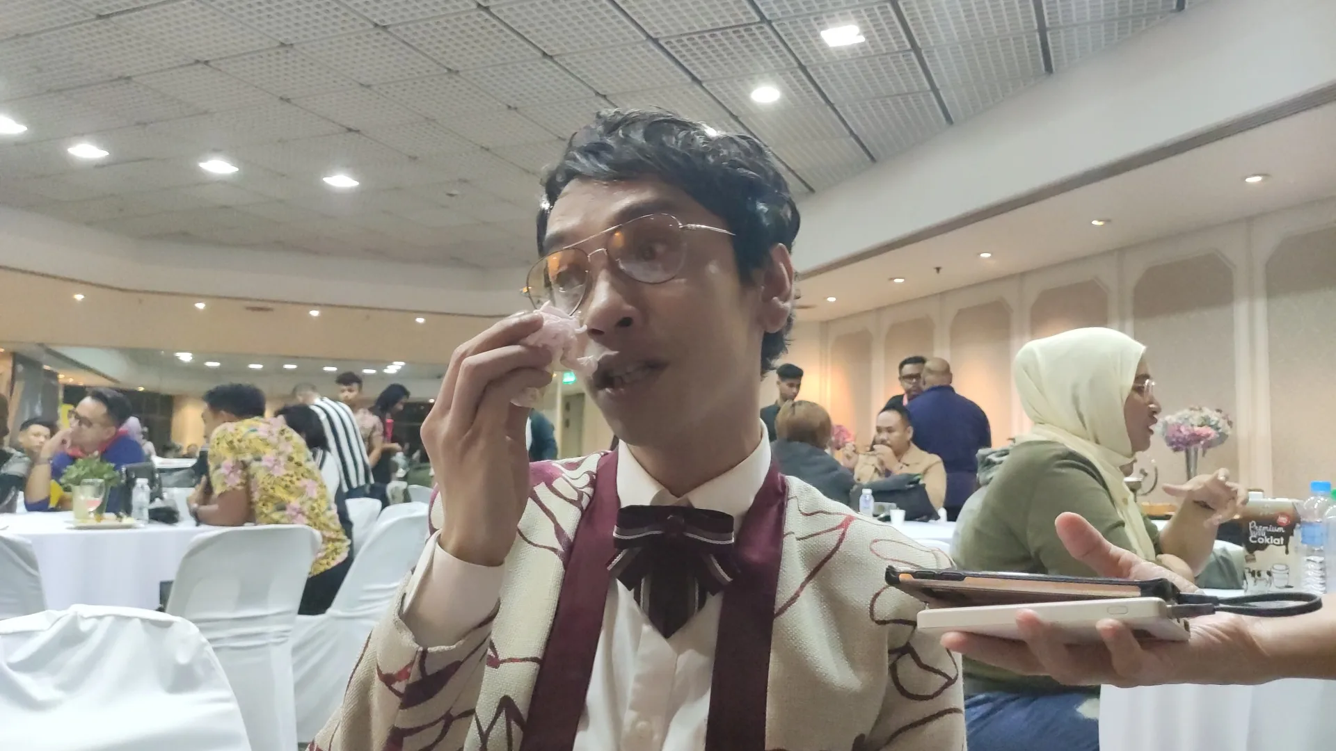“Terus terang, kami bukanlah kawan baik dan tidak pernah keluar sekalipun hanya sekadar berjumpa di belakang pentas ketika membuat persembahan. Tetapi segala impak yang dibawa kepada saya..dia buat saya macam ini.. dua jam saya duduk dengan saya.. dua jam jugalah saya akan asyik ketawa”