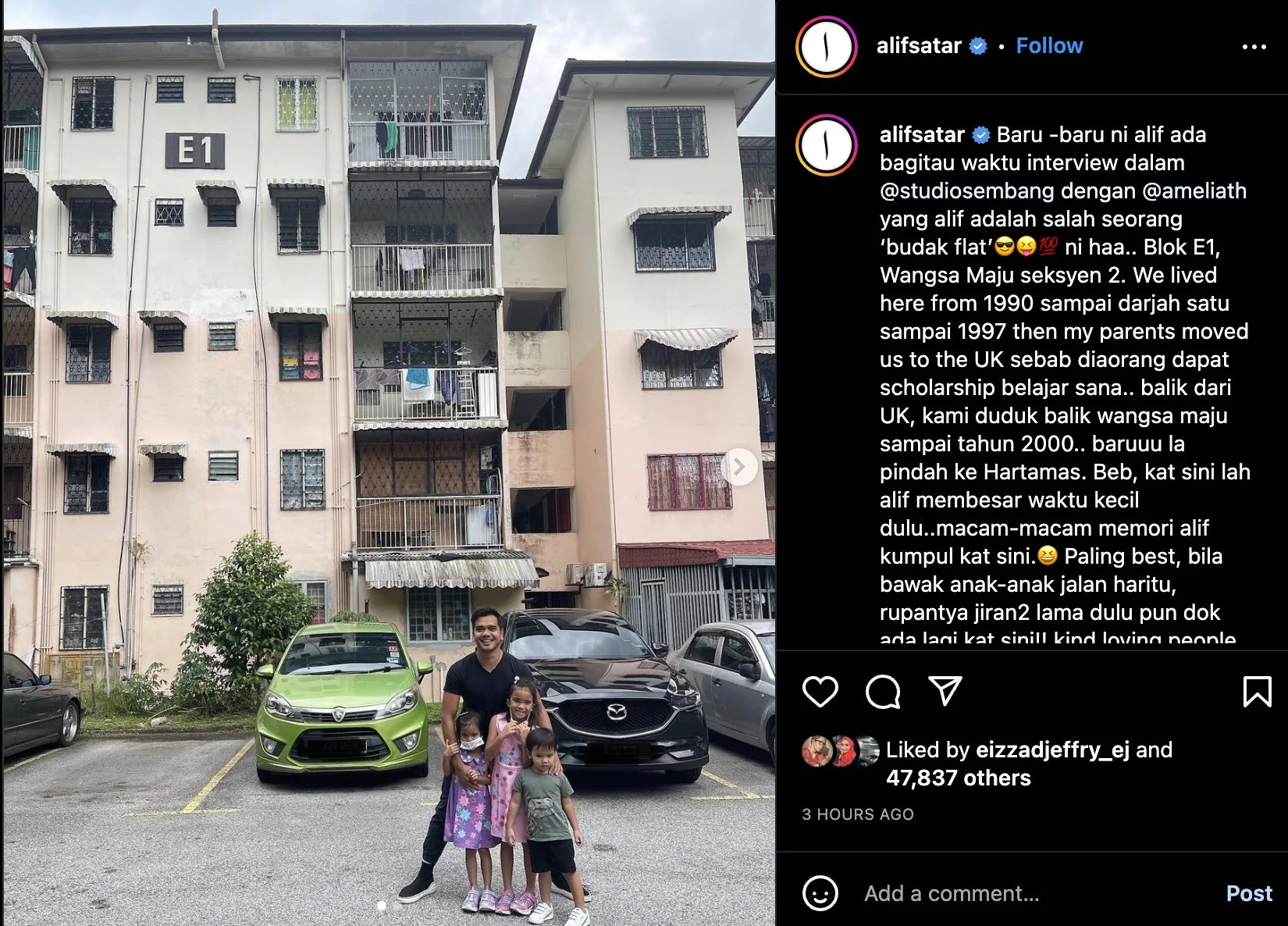 Baru-baru ini Alif berkongsi di laman instagram mengenai kehidupannya sewaktu kecil-kecil dahulu. Alif membawa keluarganya untuk menziarahi tempat yang pernah didudukinya sewaktu masih kecil bagi mengimbau kenangan yang ada.