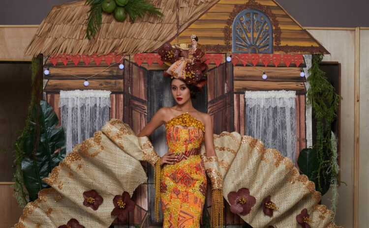 Kostum Nasional ‘Kampungku’ diilhamkan oleh rumah-rumah kampung Melayu tradisional di Malaysia.