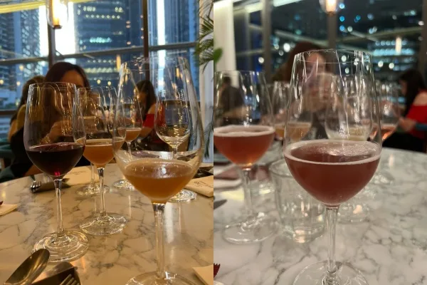 Semasa memasuki restoran, Miss Murai diberikan segelas minuman bukan berakohol NON 002, iaitu terdiri daripada gabungan pir karamel dan kombu. Rasanya pula ada sedikit tekstur mentega, wain merah dan kombucha kayu manis.