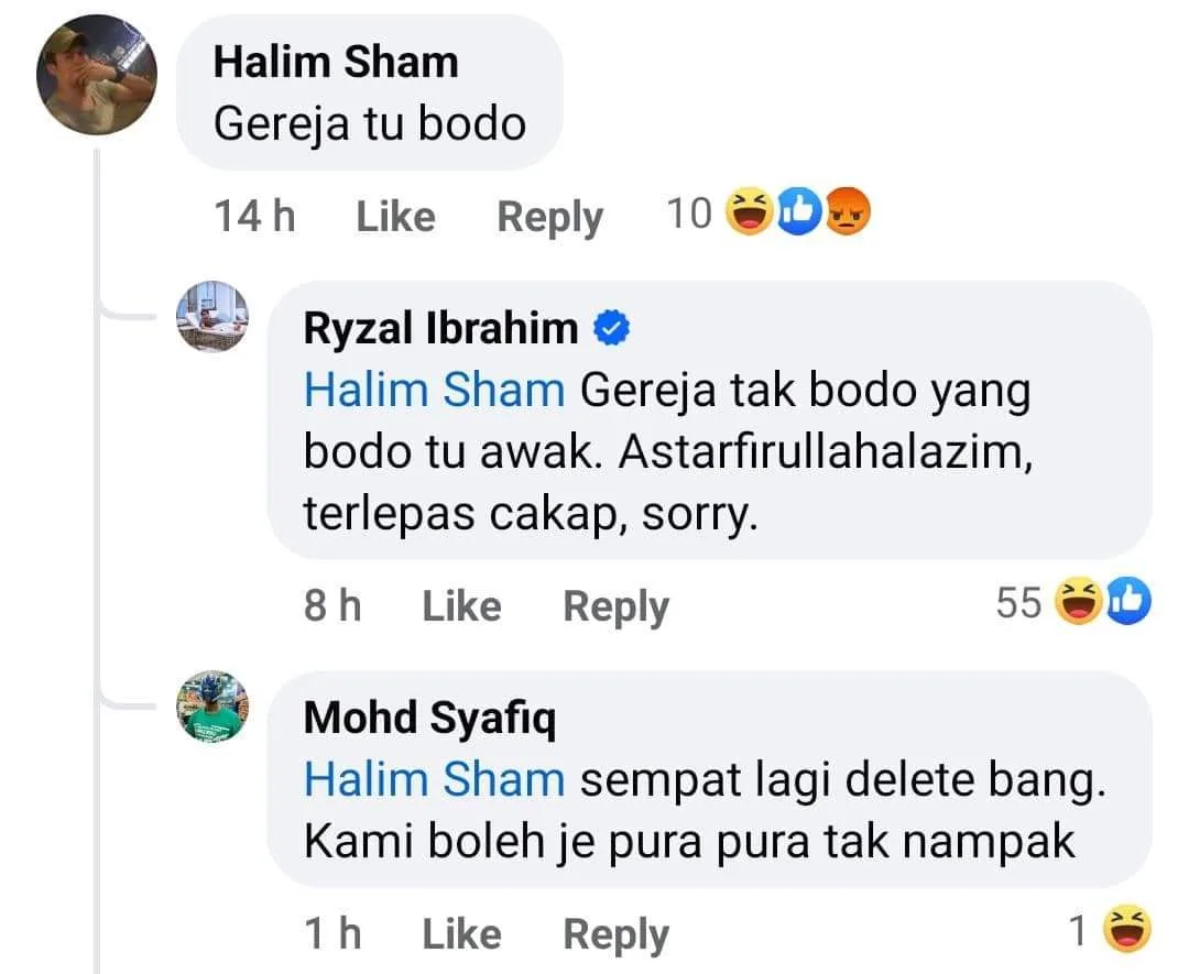 Tapi malangnya, gara-gara video itu, ramai yang kurang cerdik menganggap Ryzal masuk ke gereja.
