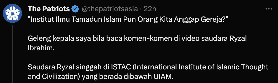 Sebuah bernama @thepatriotsasia di laman X (dahulu dengan nama Twitter) meluahkan rasa kecewa denga tahap pemikiran orang Malaysia.