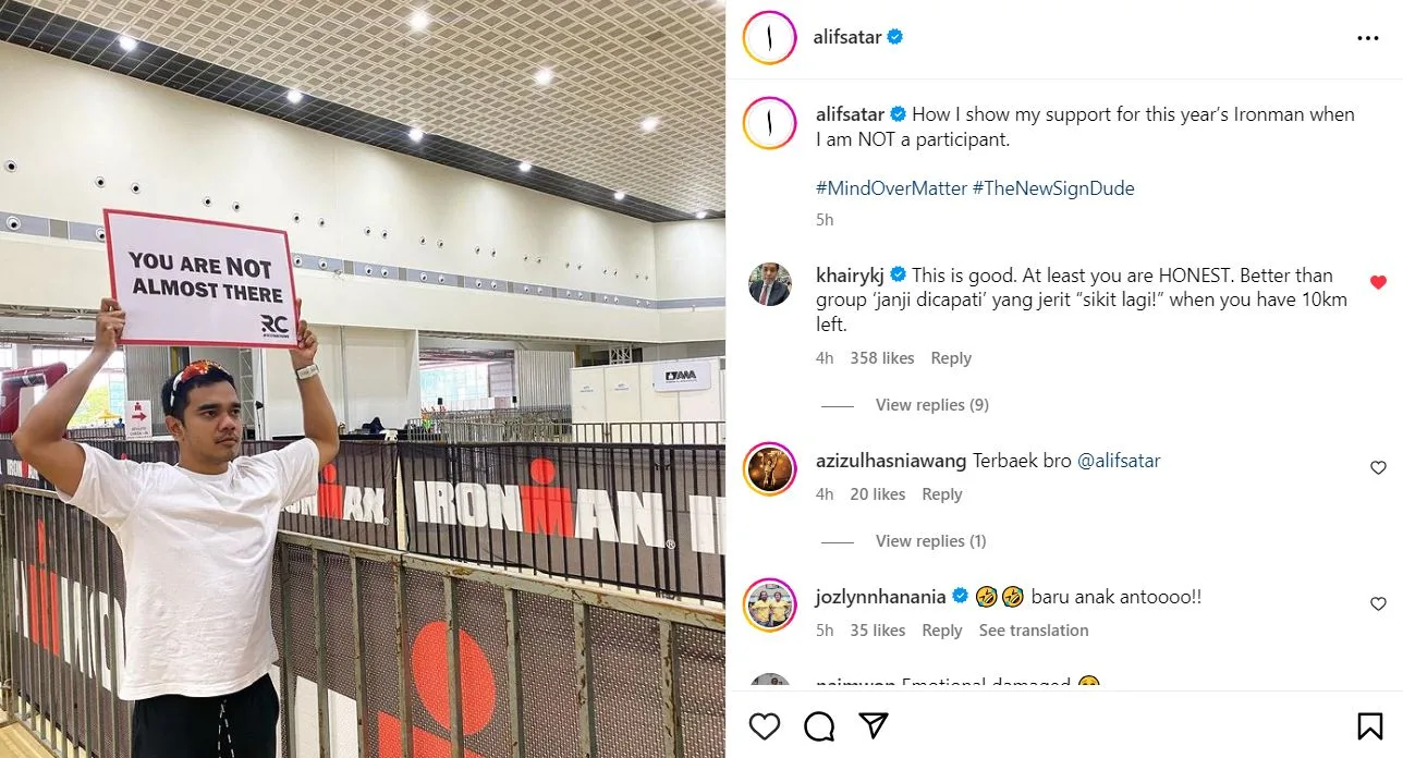 Satu hantaran di Instagram miliknya menunjukkan Alif memegang kertas yang seolah-olah memberikan gambaran sebenar jarak perjalanan yang para peserta perlu tempuhi lagi sebelum peserta-peserta ini tiba di garisan penamat.