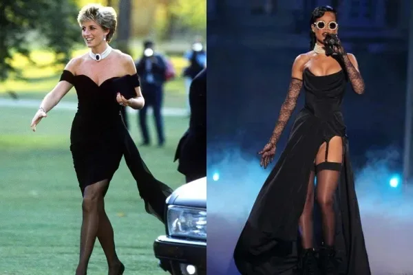 1. Paling popular revenge dress Puteri Diana turut menjadi rujukan fesyen Rihanna. Gaun koktel puteri Diana yang off-shoulder ini sedikit pendek, manakala Rihanna pula panjang, di mana dia kenakan slit dress. Dua-dua nampak seksi kan?