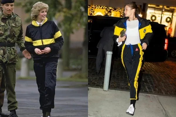2. Gigi Hadid pun pernah cipta semula gaya Puteri Diana iaitu dia memakai jaket berzip hitam-kuning dan jogger pants yang seakan-akan sama.