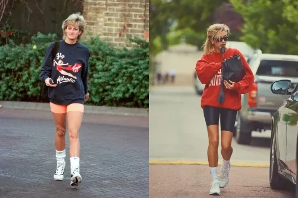3. Tak dilupakan juga gaya sporty Puteri Diana yang Hailey pernah gayakan juga iaitu padanan sweatshirt grafik dan biker short.