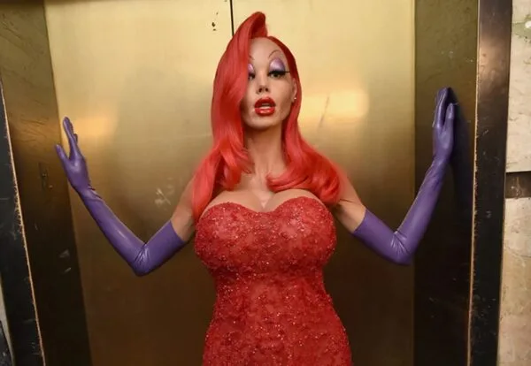 Model ini menjadi Jessica Rabbit semasa Halloween. Dia memakai rambut palsu merah, sarung tangan ungu panjang, kasut tumit merah dan gaun berlabuci merah dengan belahan di paha, menampakkan kakinya yang panjang.